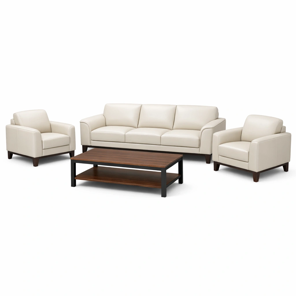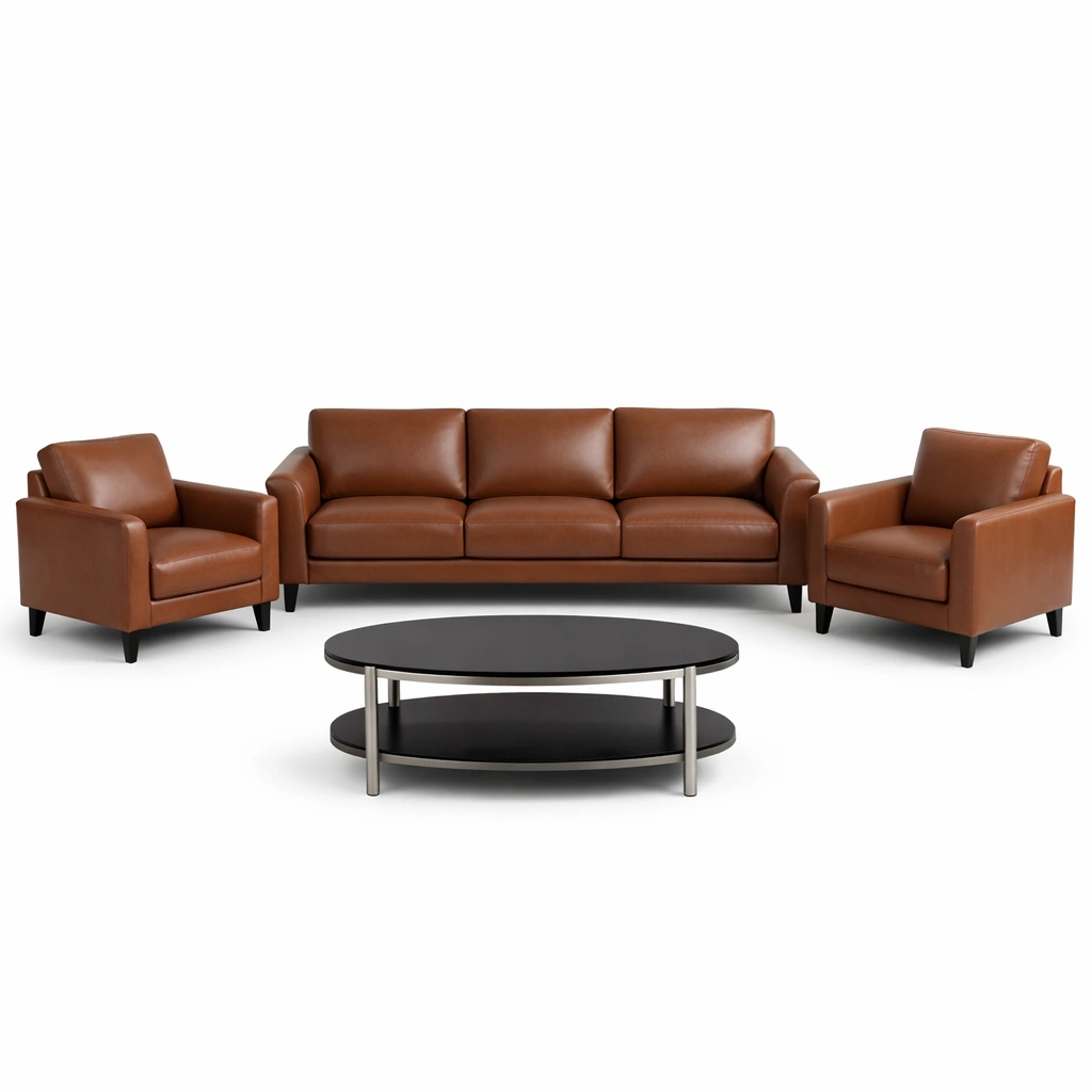 Sofaset kunstleder mit sofa sesseln und holztisch