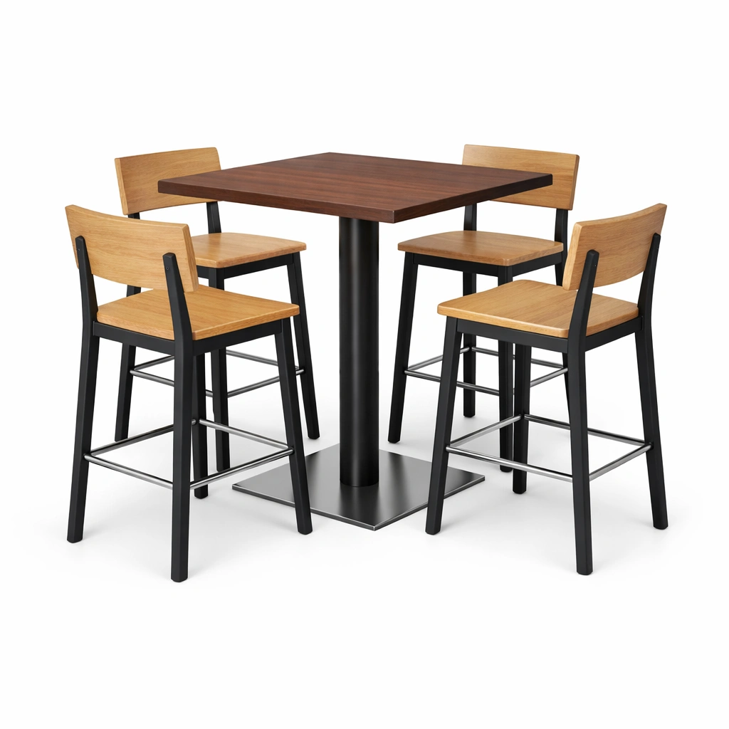 Material: Tischplatte aus MDF mit Holzfurnier, Gestell aus pulverbeschichtetem Stahl