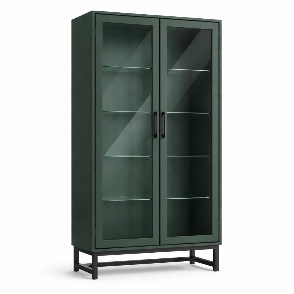 Struktur: 4 Einlegeböden, Doppeltüren aus Glas, Metallbeine.
